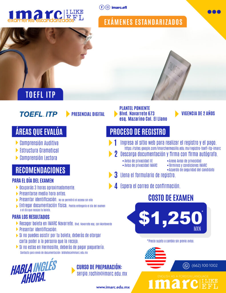 Le informamos que en estos momentos estamos ofreciendo exámenes TOEFL ITP en dos formatos: